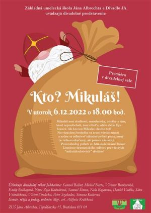 Vianoce sú čoraz bližšie a žiaci literárno-dramatického odboru si prichystali premiéru divadelného predstavenia Kto? Mikuláš! Srdečne vás pozývame v utorok 6.12. o 18.00 hod. do divadelnej sály našej Základnej umeleckej školy Jána Albrechta.